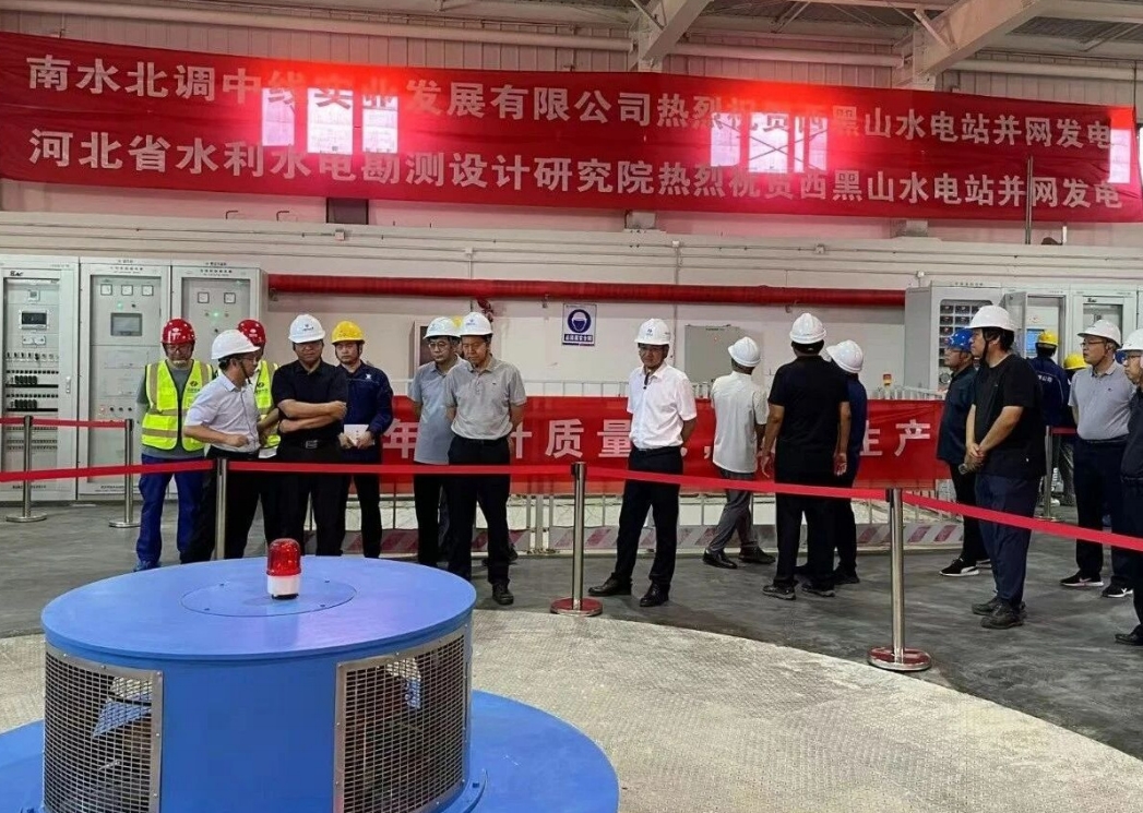 西黑山水电站位于河北省保定市徐水区,为无调节引水式发电站,利用天津干线渠首段约 25 米的水位落差进行发电。电站额定引水流量 48.2m3/s,安装 2 台混流式机组,装机容量 10.4MW,多年平均发电量 5622.57 万千瓦时。电站于 2024 年 3 月 18 日开工,2025 年 7 月 31 日通过并网验收,具备并网发电条件。经测算,电站年均可减少碳排放 5.5 万吨,相当于 3000 亩森林的固碳能力,对优化区域能源结构、缓解电力供需矛盾具有积极作用。